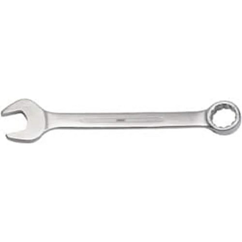 Heavy duty long pattern, fully drop forged chrome vanadium steel hardened, tempered and chrome plated. Polished ring end offset at 15�. Jaw offset at 15�. Sold loose in polybags with barcode label.