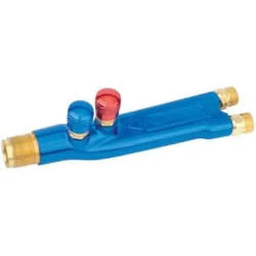 Designed for sheet metal and the automotive trade. Comprises three separate items: Heavy Duty Shank (Stock No. 35031) which carries oxygen and acetylene and controls gas flow to the Heavy Duty Cutting Attachment (Stock No. 35033) and a Heavy Duty Gas Mixer (Stock No. 35032) for combining oxygen and acetylene which holds welding nozzles (supplied separately). Items are purchased separately to make up combination required. All items are carton packed.