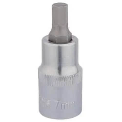 Expert Quality, socket fitted with a hexagonal bit, with an overall length of 55mm. All sockets manufactured from hardened and tempered chrome vanadium steel with sand blasted bits of S2 silicon steel. Each socket has a knurled ring for extra grip. Display packed.