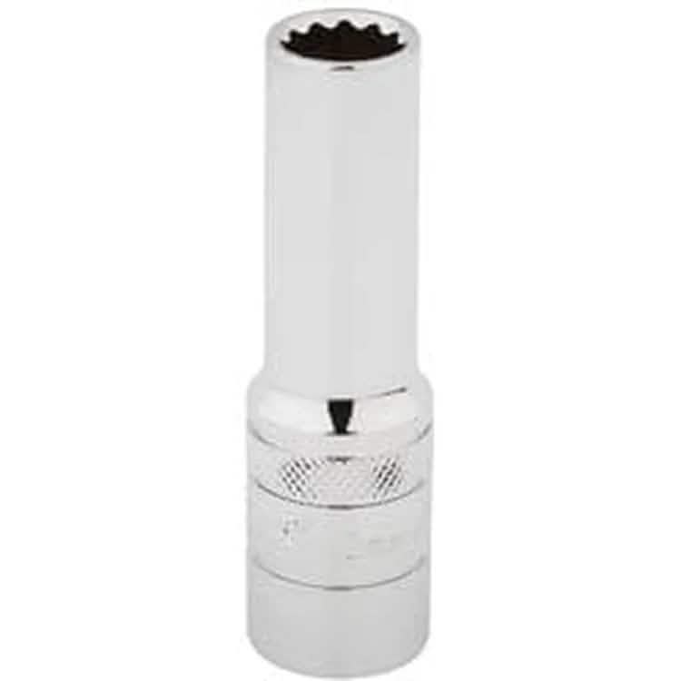 Expert Quality, 12 point deep sockets manufactured from chrome vanadium steel that's hardened and tempered with a polished finish. Each socket has a knurled ring for extra grip. Display packed.