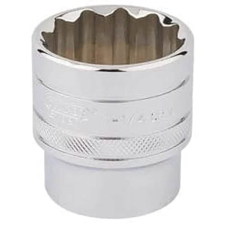 Expert Quality, 12 point sockets manufactured from chrome vanadium steel that's hardened and tempered with a polished finish. Each socket has a knurled ring for extra grip. Display packed.