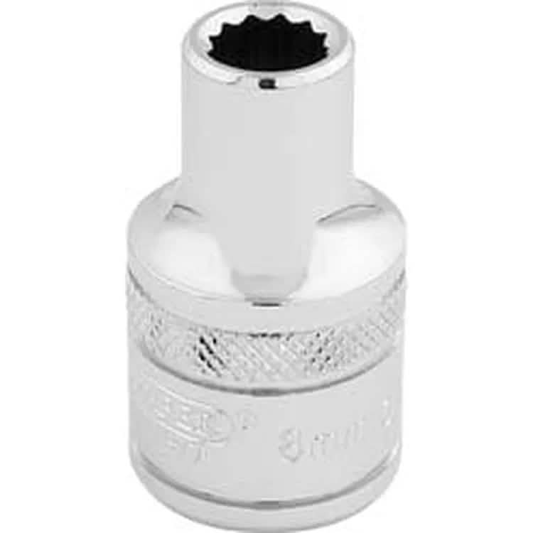Expert Quality, 12 point sockets manufactured from chrome vanadium steel that's hardened and tempered with a polished finish. Each socket has a knurled ring for extra grip. Display packed.