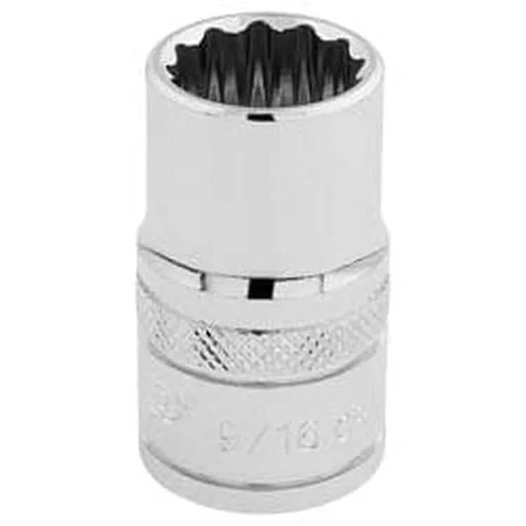 Expert Quality, 12 point sockets manufactured from chrome vanadium steel that's hardened and tempered with a polished finish. Each socket has a knurled ring for extra grip. Display packed.
