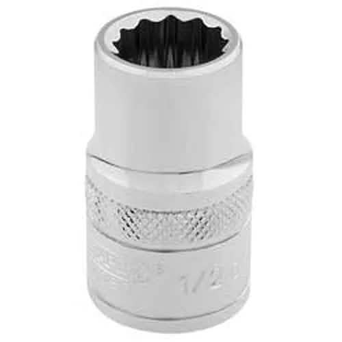 Expert Quality, 12 point sockets manufactured from chrome vanadium steel that's hardened and tempered with a polished finish. Each socket has a knurled ring for extra grip. Display packed.