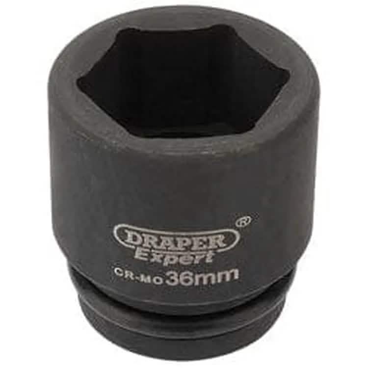 Expert Quality, 6 point sockets forged from chrome molybdenum hardened, tempered and chemically blacked for corrosion protection. Supplied with pin and ring. These sockets are for use with air, electric or manual impact wrenches. Packed in polythene bag with barcode.