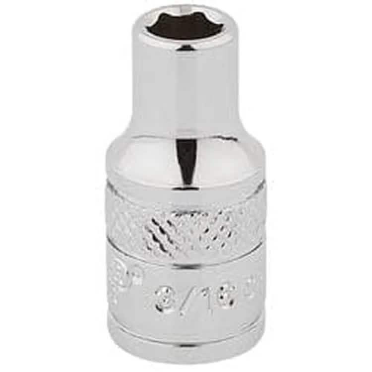 Expert Quality, 6 point sockets manufactured from chrome vanadium steel that's hardened and tempered with a polished finish. Each socket has a knurled ring for extra grip. Sold loose.