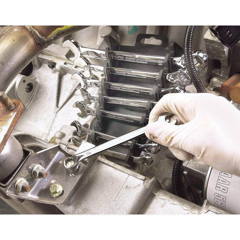 Expert Quality, with Draper Expert HI-TORQ° deep offset pattern ring end. Open end set at 15°. Forged from chrome vanadium steel, hardened, tempered, chrome plated and fully polished throughout. Supplied on wall mountable plastic rack. Display packed.