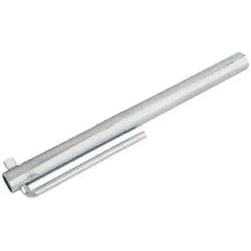 A tubular carbon steel zinc plated wrench, designed for use with spark plugs which are deep set into engine blocks. Socket end has rubber insert for spark plug insulator protection and retention. Supplied with integral tommy bar. Display packed.