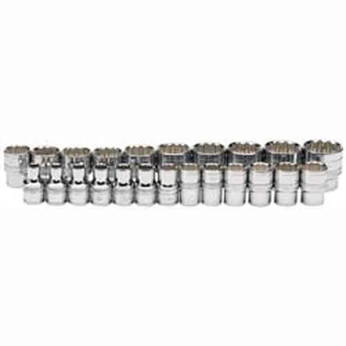 Draper Loose Metric Socket Set, 1/2" Sq. Dr., Polished Chrome (23 Piece) Dr-34561