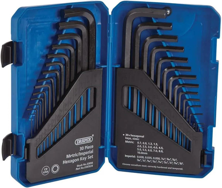 Draper 33894 Metric/Imperial Combined Long Pattern Hexagon Key Set (30 Piece) DR-33894