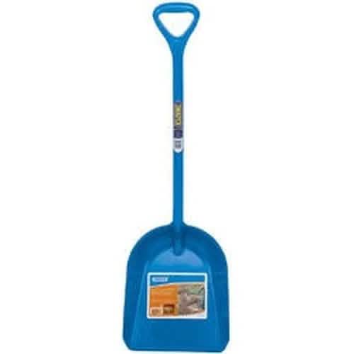 Heavy duty one piece polypropylene shovel with extra wide blade and forward tilt y-dee shaped handle for user comfort. Ideal for use with wood chips, snow, grain, stable/farm waste and compost. Blade width: 345mm and 380mm long. Sold loose.
