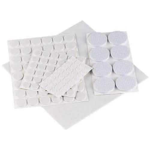 EVA pads with adhesive backing for protecting furniture surfaces, worktops, parquet and laminate flooring etc. Five sizes available. Display packed.