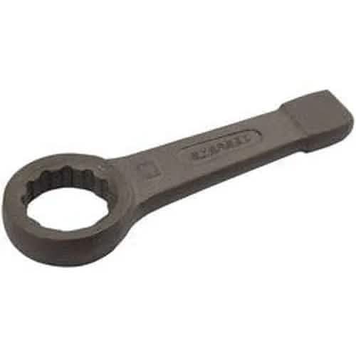 Flat pattern spanners with striking end. Forged from good quality carbon steel, hardened, tempered with black phosphate finish. Length +/- 5mm. Sold loose.