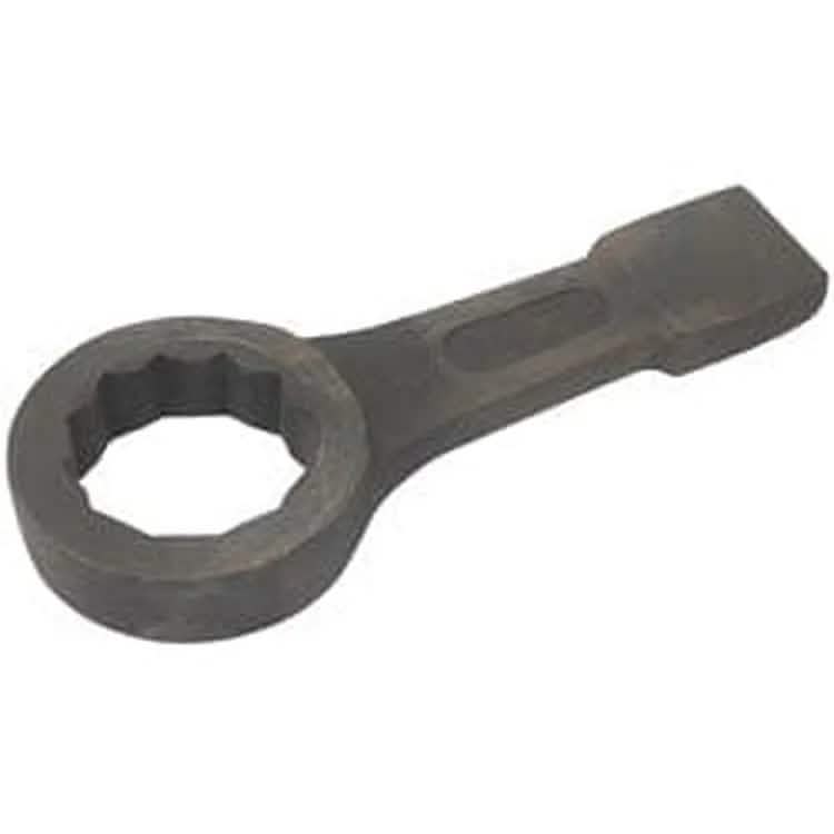 Flat pattern spanners with striking end. Forged from good quality carbon steel, hardened, tempered with black phosphate finish. Length +/- 5mm. Sold loose.