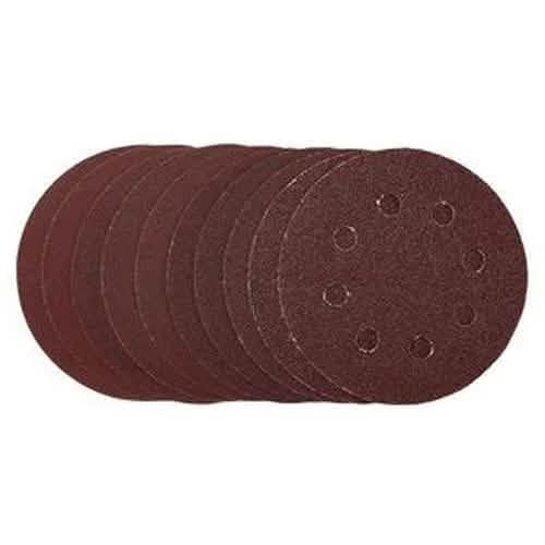 These premium quality aluminium oxide 115mm sanding discs are resin bonded to provide improved grain adhesion, anti-static qualities and long-lasting high performance. The heavy-duty E-Weight backing paper makes the sanding disc more durable – able to withstand the toughest jobs. The hook and loop backing offers decent adhesion to facilitate the fast changing of sanding discs. The eight pre-punched 8mm holes improve the dust extraction during sanding. Ideal for sanding and finishing wood, metal, aluminium alloy, painted surfaces, plastic and fillers. Compatible with all 115mm hook and loop backing pads.