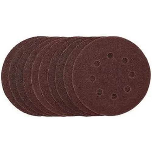 These premium quality aluminium oxide 125mm sanding discs are resin bonded to provide improved grain adhesion, anti-static qualities and long-lasting high performance. The heavy-duty E-Weight backing paper makes the sanding disc more durable – able to withstand the toughest jobs. The hook and loop backing offers decent adhesion to facilitate the fast changing of sanding discs. The eight pre-punched 8mm holes improve the dust extraction during sanding. Ideal for sanding and finishing wood, metal, aluminium alloy, painted surfaces, plastic and fillers. Compatible with all 125mm random orbital sanders with hook and loop backing pads.