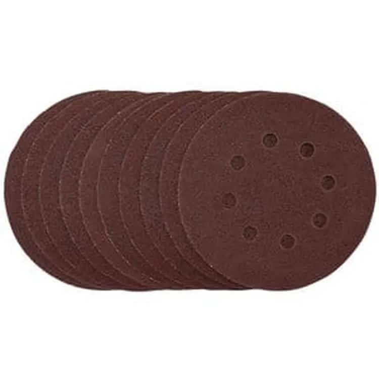 These premium quality aluminium oxide 125mm sanding discs are resin bonded to provide improved grain adhesion, anti-static qualities and long-lasting high performance. The heavy-duty E-Weight backing paper makes the sanding disc more durable – able to withstand the toughest jobs. The hook and loop backing offers decent adhesion to facilitate the fast changing of sanding discs. The eight pre-punched 8mm holes improve the dust extraction during sanding. Ideal for sanding and finishing wood, metal, aluminium alloy, painted surfaces, plastic and fillers. Compatible with all 125mm random orbital sanders with hook and loop backing pads.