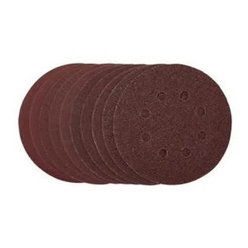 These premium quality aluminium oxide 125mm sanding discs are resin bonded to provide improved grain adhesion, anti-static qualities and long-lasting high performance. The heavy-duty E-Weight backing paper makes the sanding disc more durable – able to withstand the toughest jobs. The hook and loop backing offers decent adhesion to facilitate the fast changing of sanding discs. The eight pre-punched 8mm holes improve the dust extraction during sanding. Ideal for sanding and finishing wood, metal, aluminium alloy, painted surfaces, plastic and fillers. Compatible with all 125mm random orbital sanders with hook and loop backing pads.