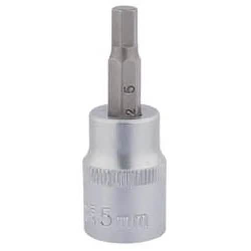 Expert Quality, sockets fitted with hexagonal bits, with an overall length of 48mm. All sockets manufactured from hardened and tempered chrome vanadium steel with sand blasted bits of S2 silicon steel. Each socket has a knurled ring for extra grip. Display packed.