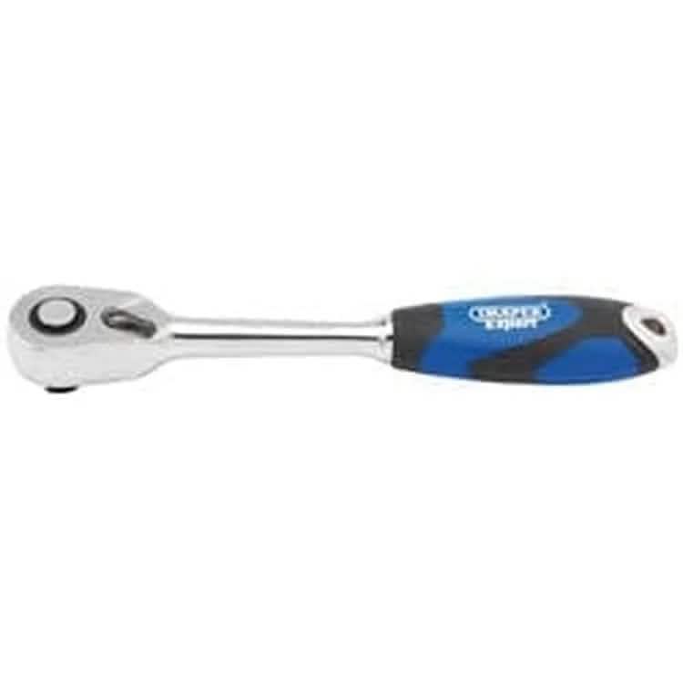 Expert Quality, 72 tooth reversible ratchet with soft grip handle and quick release button. Chrome vanadium steel head and shaft with micro satin finish. Display packed.