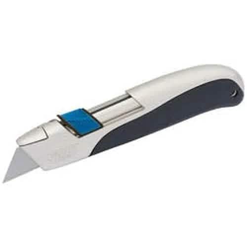 Expert Quality, retractable pattern with special blade feature allows blade to retract automatically when surface contact is lost even when thumb pressure is maintained. Diecast zinc alloy body with anti-slip soft grip handle for user comfort. Supplied with five spare blades. Display packed.