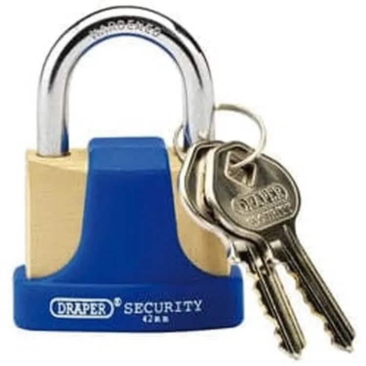 Draper Solid Brass Padlock and 2 Keys with Hardened Steel Shackle and Bumper, 42mm DR-64165