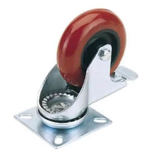 Swivel plate fixing with brake. High tear strength, up to twice the service life of rubber wheels with good load carrying capacity. Sold in polybags with label.