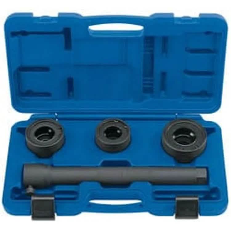 Expert Quality, kit designed for easy removal and installation of ball joints on track rods. Knurled handle provides extra grip and three interchangeable heads offer complete versatility. Supplied with robust impact resistant plastic carrying box. Display packed.