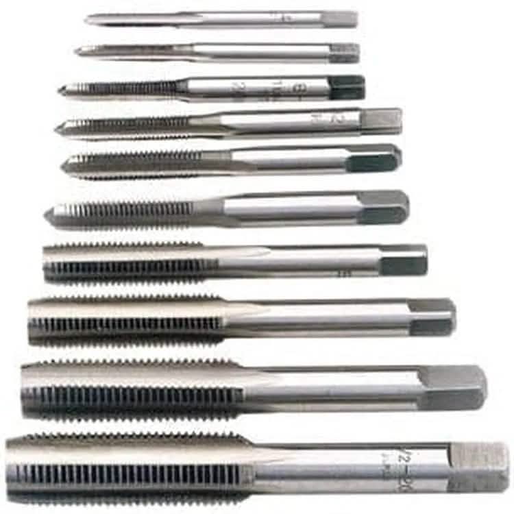 Contents:: 1 x Tap size: 5 x 44 (tpi) 1 x Tap size: 6 x 40 (tpi) 1 x Tap size: 8 x 36 (tpi) 1 x Tap size: 10 x 32 (tpi) 1 x Tap size: 12 x 28 (tpi) 1 x Tap size: 1/4" x 28 (tpi) 1 x Tap size: 5/16" x 24 (tpi) 1 x Tap size: 3/8" x 24 (tpi) 1 x Tap size: 7/16" x 20 (tpi) 1 x Tap size: 1/2" x 20 (tpi)