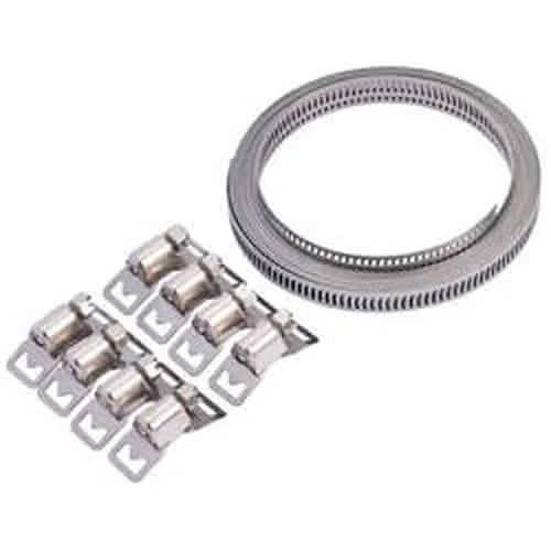 Makes hose clamps of users required length. Two widths of banding available, 8 and 12mm. Each set is supplied with a 3M length of banding and eight tensioning clamps. Display packed.