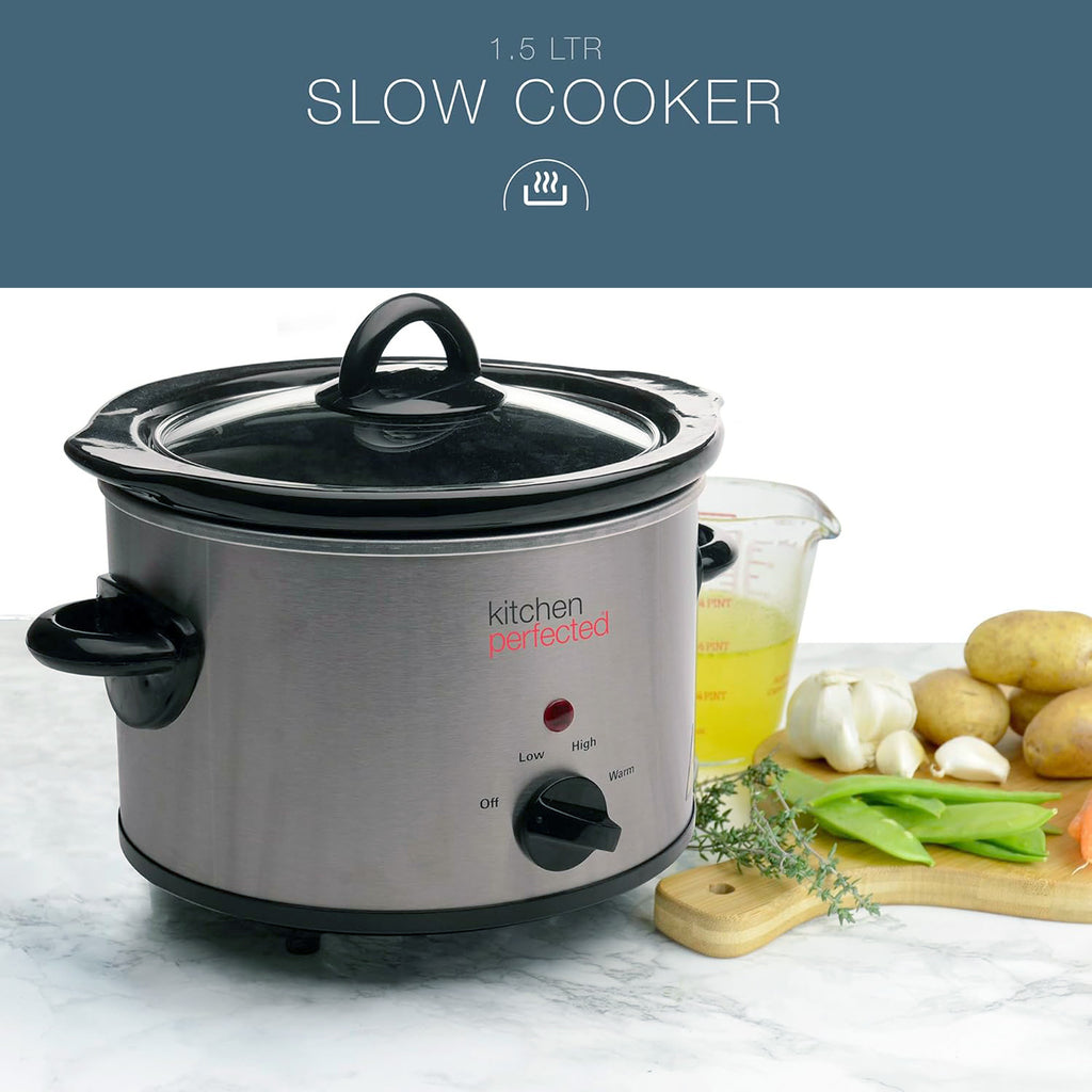 1.5L Electric Slow Cooker Stainless Steel with Clear Glass Lid and Removable Ceramic Pot