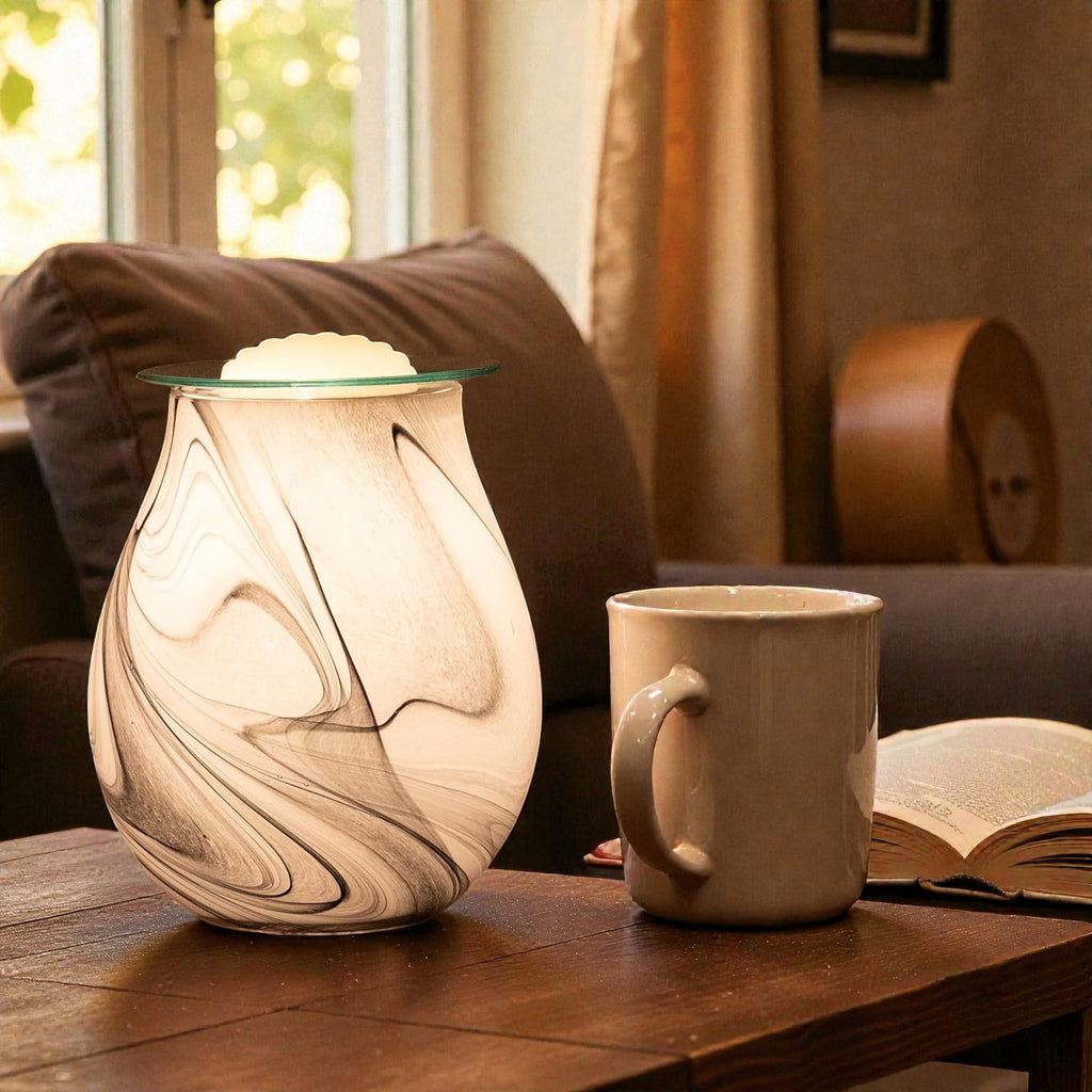 These stunning Grey Marble Effect Scented Wax Warmer/Essential Oil Burner creates a soothing atmosphere by heating wax melts or essential oils, releasing your favourite scent in to the room.