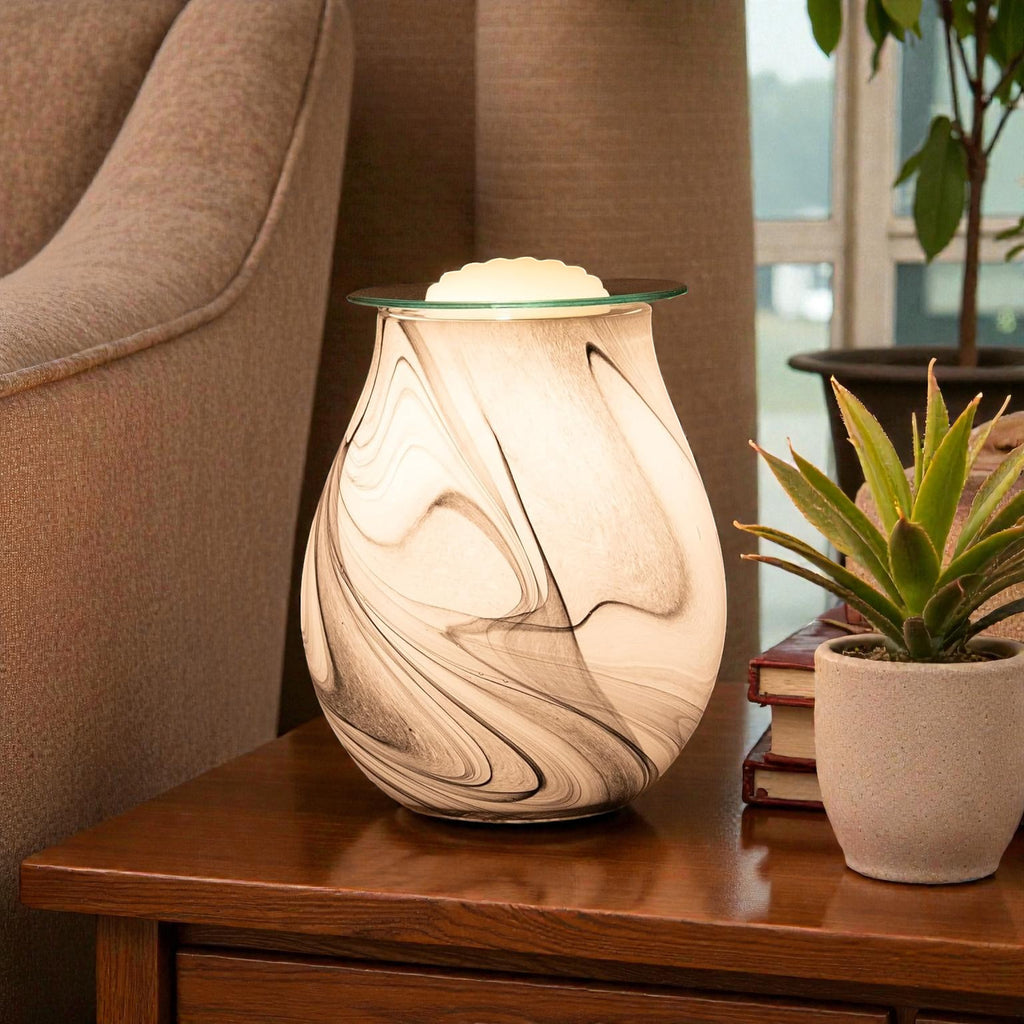 These stunning Grey Marble Effect Scented Wax Warmer/Essential Oil Burner creates a soothing atmosphere by heating wax melts or essential oils, releasing your favourite scent in to the room.