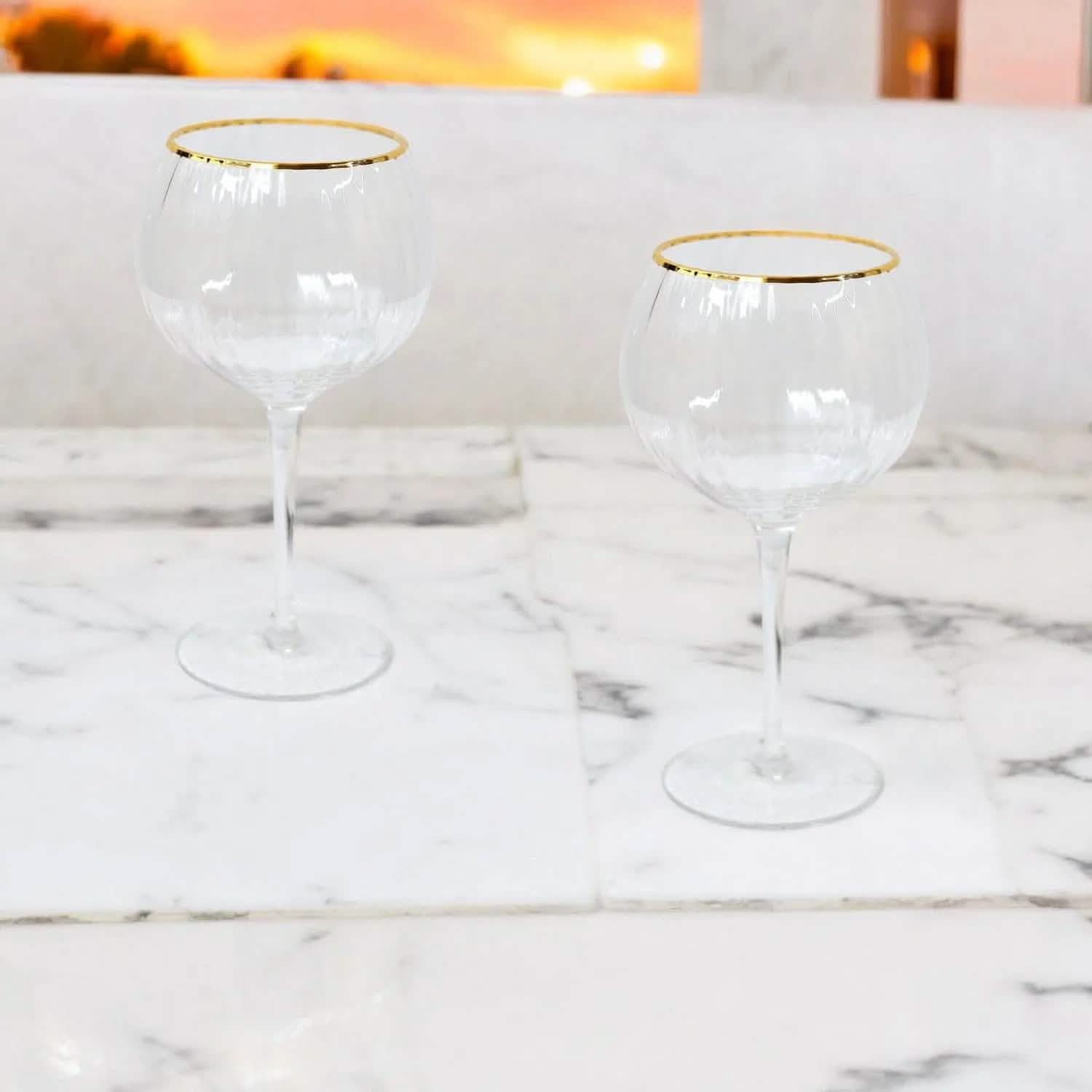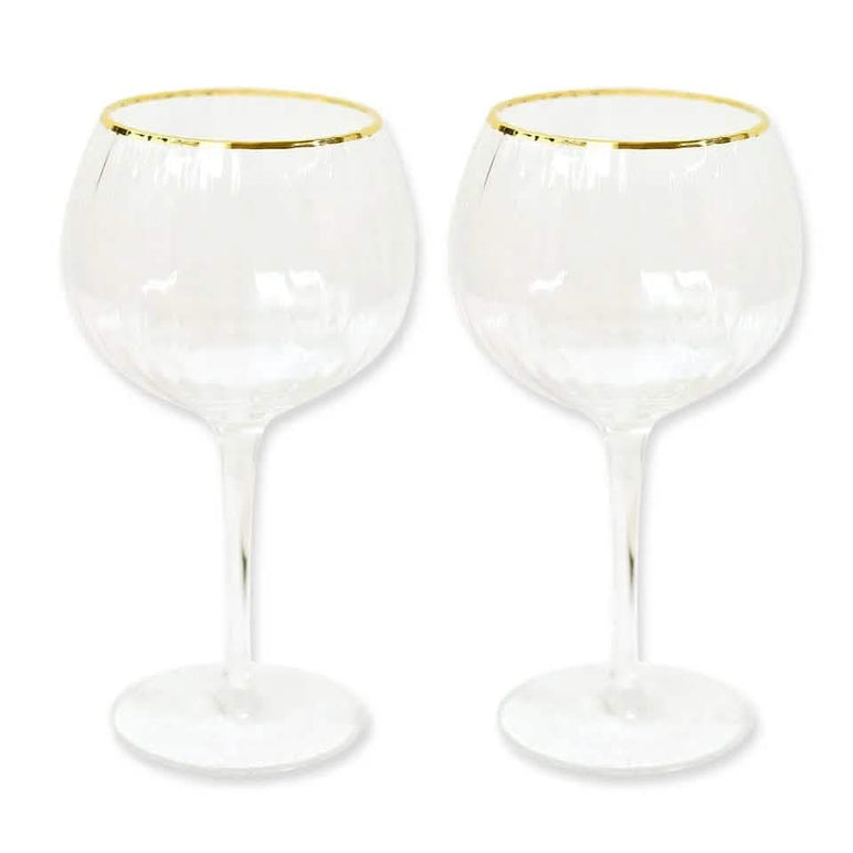 Set of 2 Gold Rim Scalloped Gin Glasses
