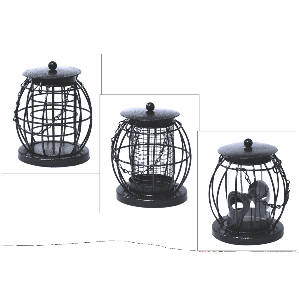 - Small, lantern shaped nut bird feeder with squirrel guard.