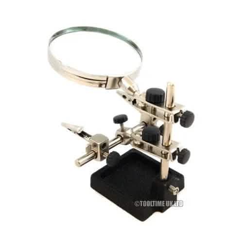 This "third hand" magnifier gives you that extra hand when you need it most! This indispensable tool for the model maker and profesional alike boasts adjustable joints and strong crocodile clips allowing greater versatility and secure workpiece positioning.