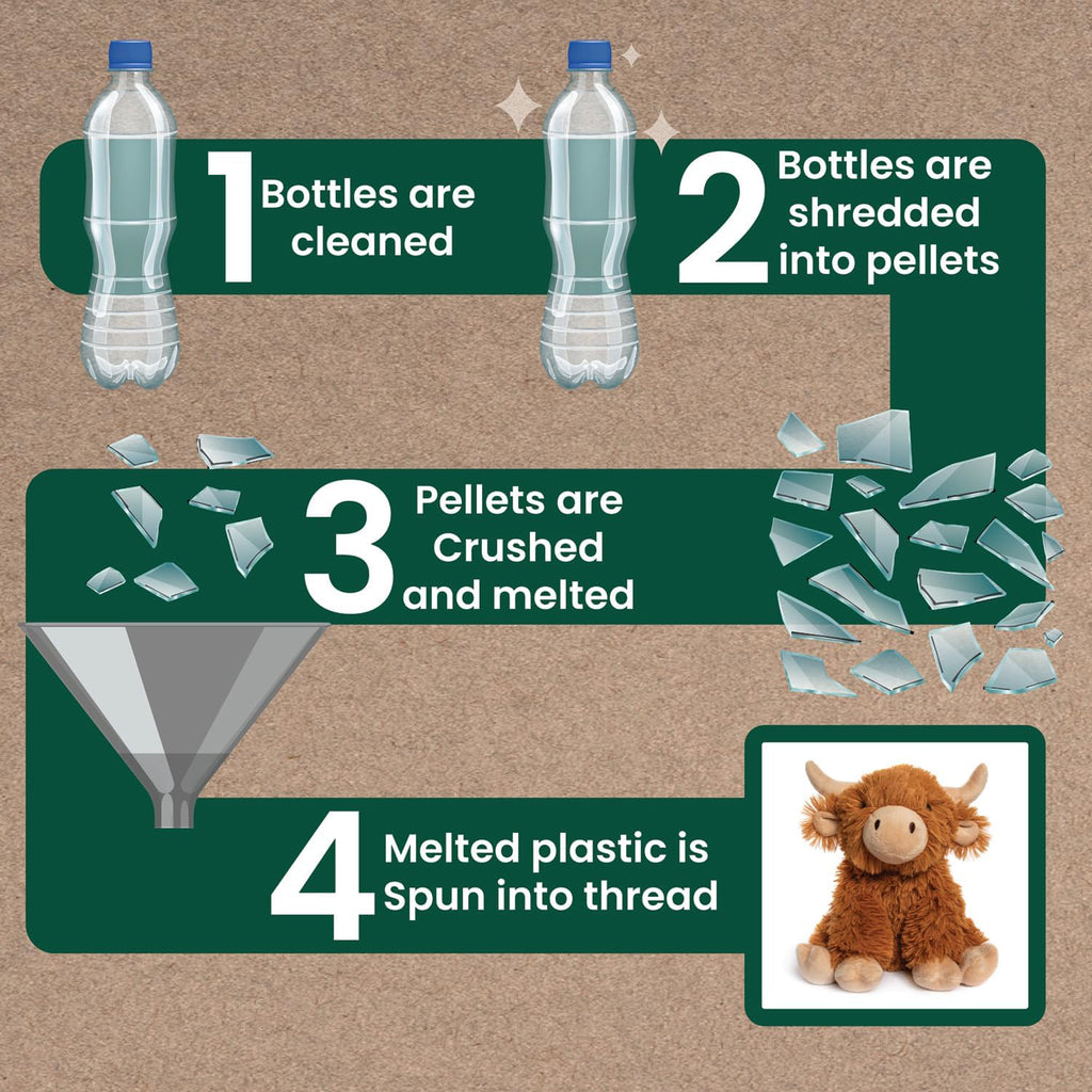 Hughie the Highland Cow Kids Teddy Plush Cuddly Animal Soft Toy | R'Pet Pals - Made from Recycled Plastic Bottles