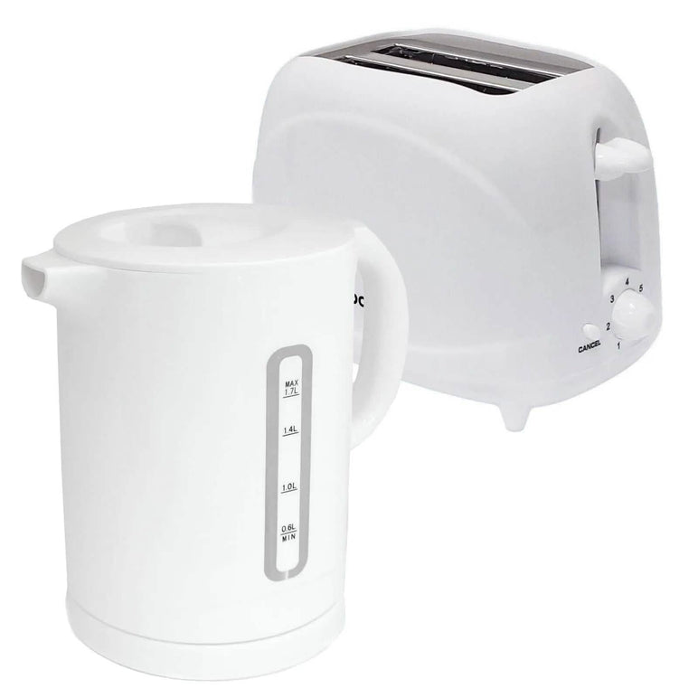This 1.7 Litre 2200W Cordless Electric Kettle and 700W 2 Slice White Toaster Set has a stylish, contemporary design and would look at home in any kitchen.
