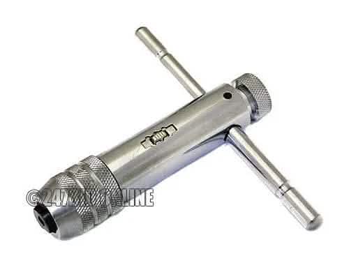 A gnarled ring around the tip of this wrench allows you to loosen and tighten the tap in the wrench when you have oily fingers.