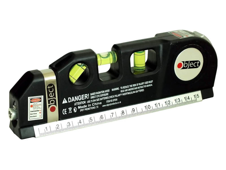 Multipurpose Laser Level with Horizontal and Vertical Spirit Levels and 14cm Measuring Tape