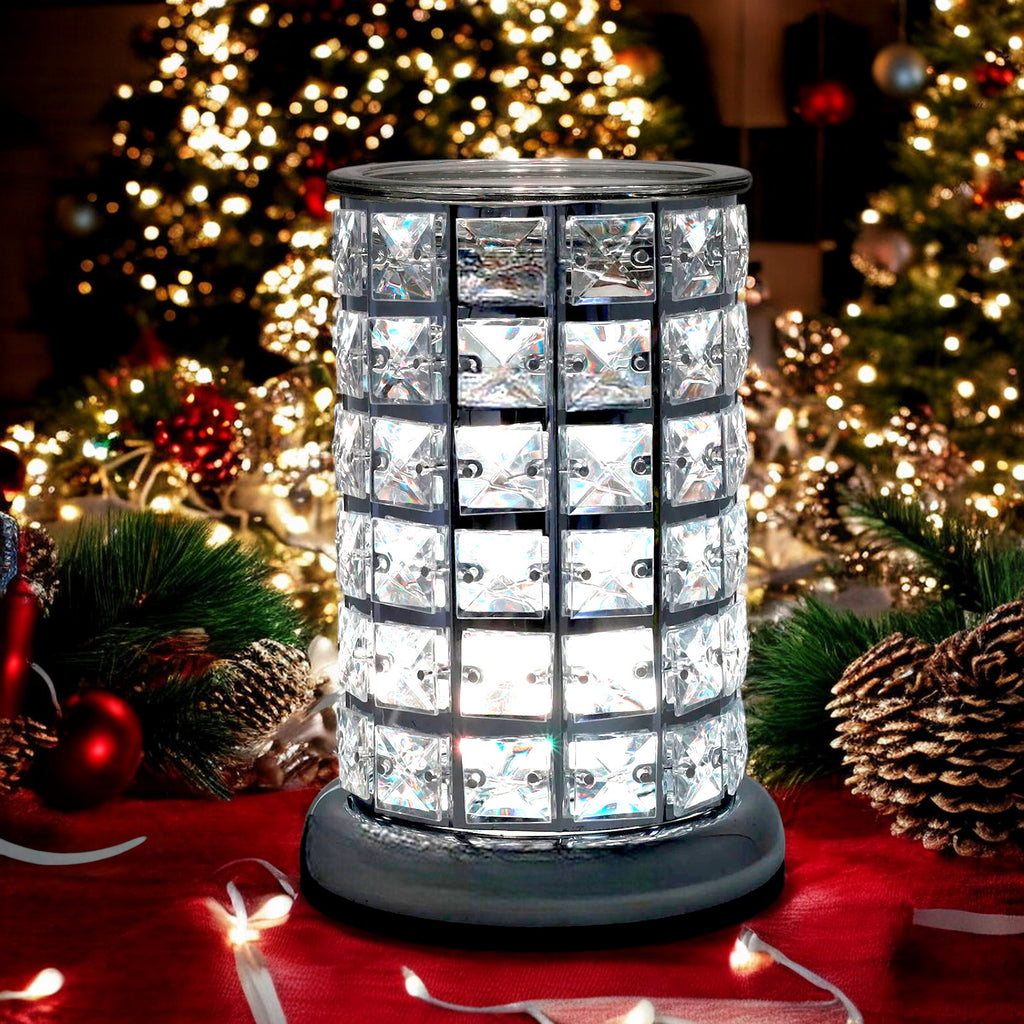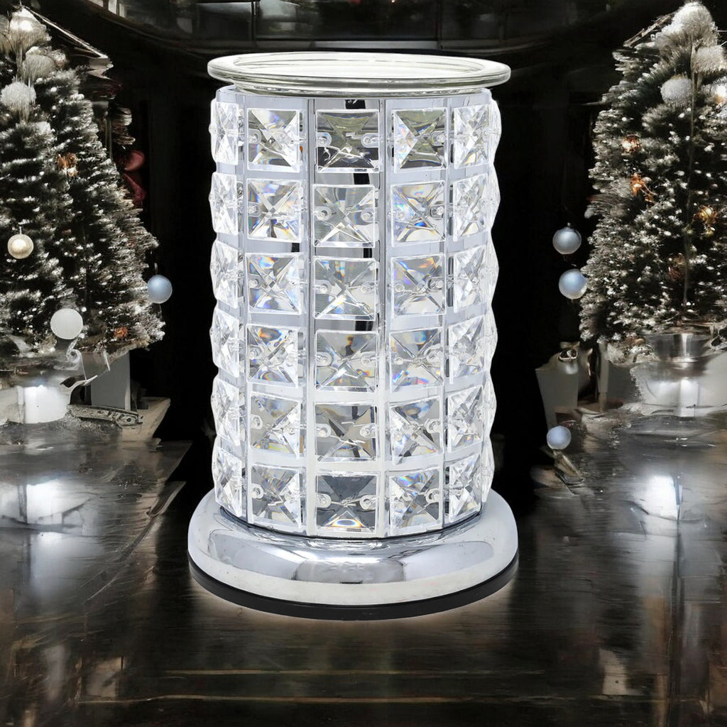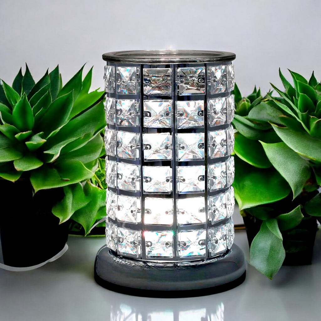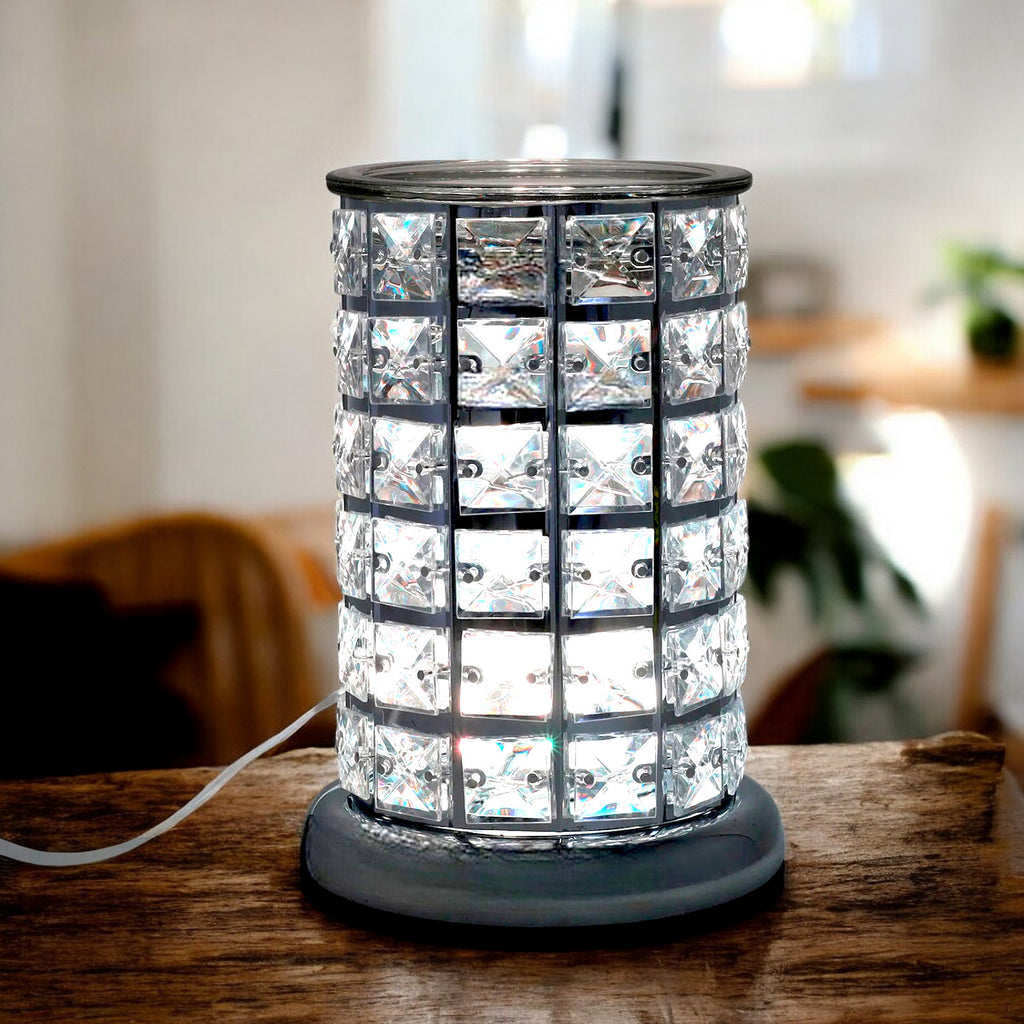 Indulge in the mesmerizing glow of this colour-changing aroma burner lamp, adorned with sparkling diamante crystals that cast enchanting patterns around your space.