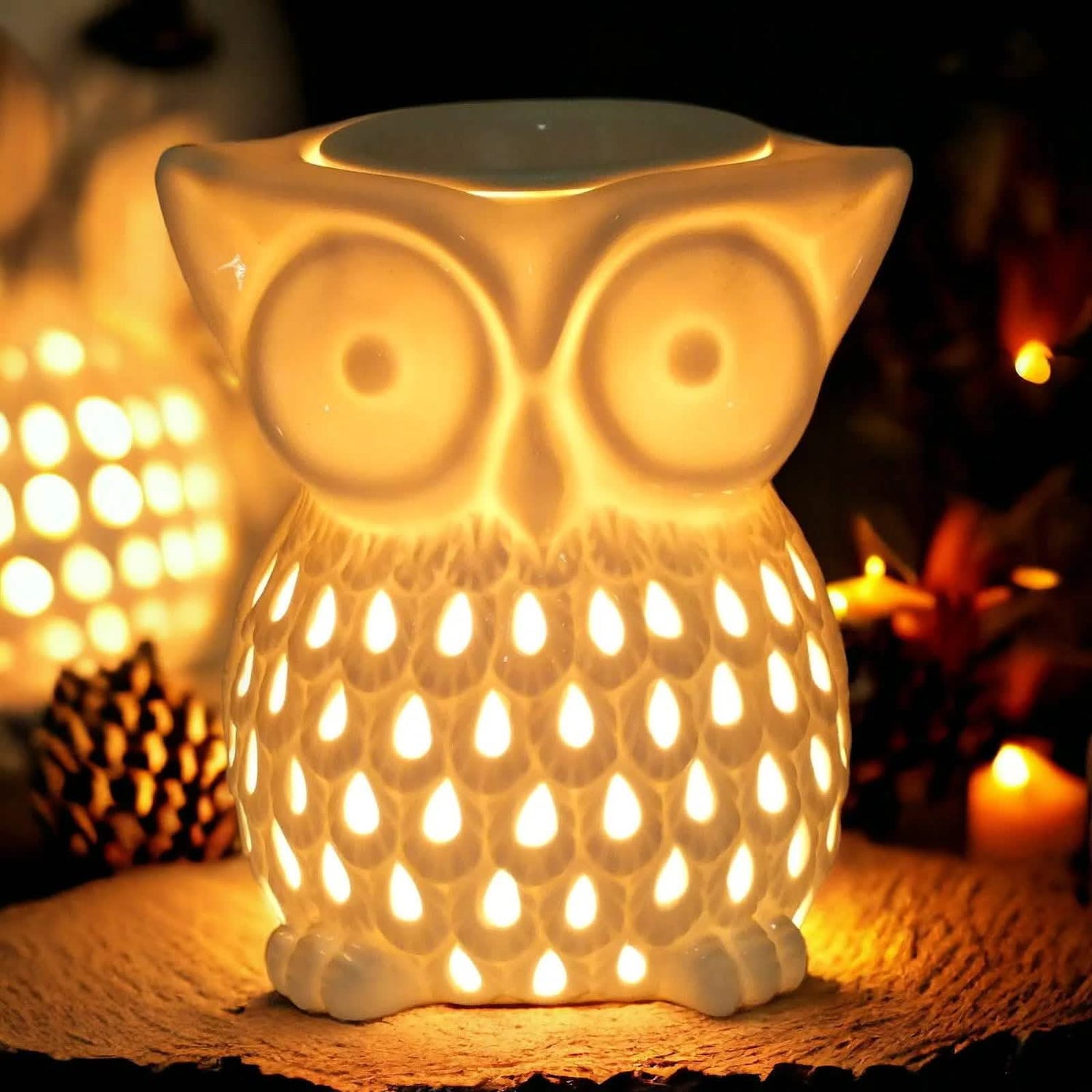 Relax and be enchanted by this adorable white owl aroma lamp, ideal for creating a calming atmosphere in any room.