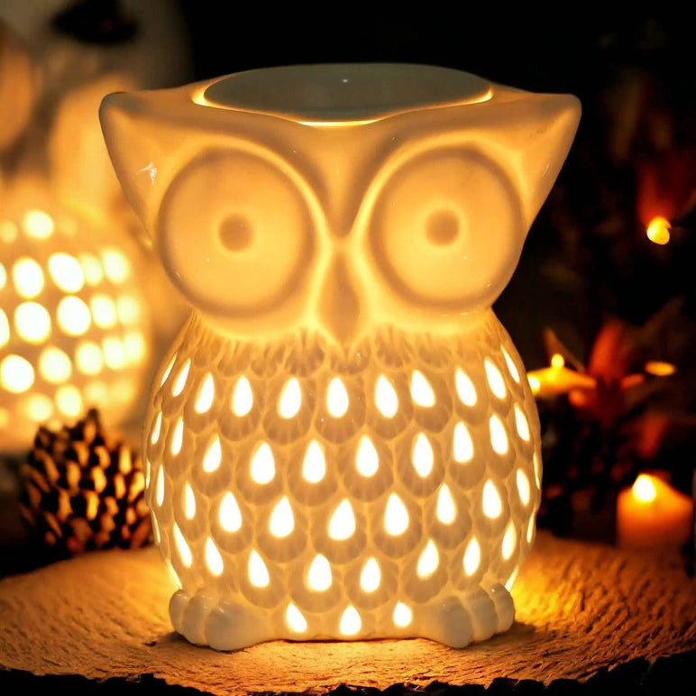 White Ceramic Owl Aroma Lamp & Oil Burner - Perfect for Wax Melts