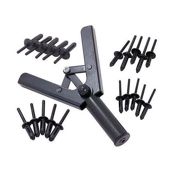 Plastic Rivet Gun Garage Bodyshop Hand Riveter Tool + 40 Rivets