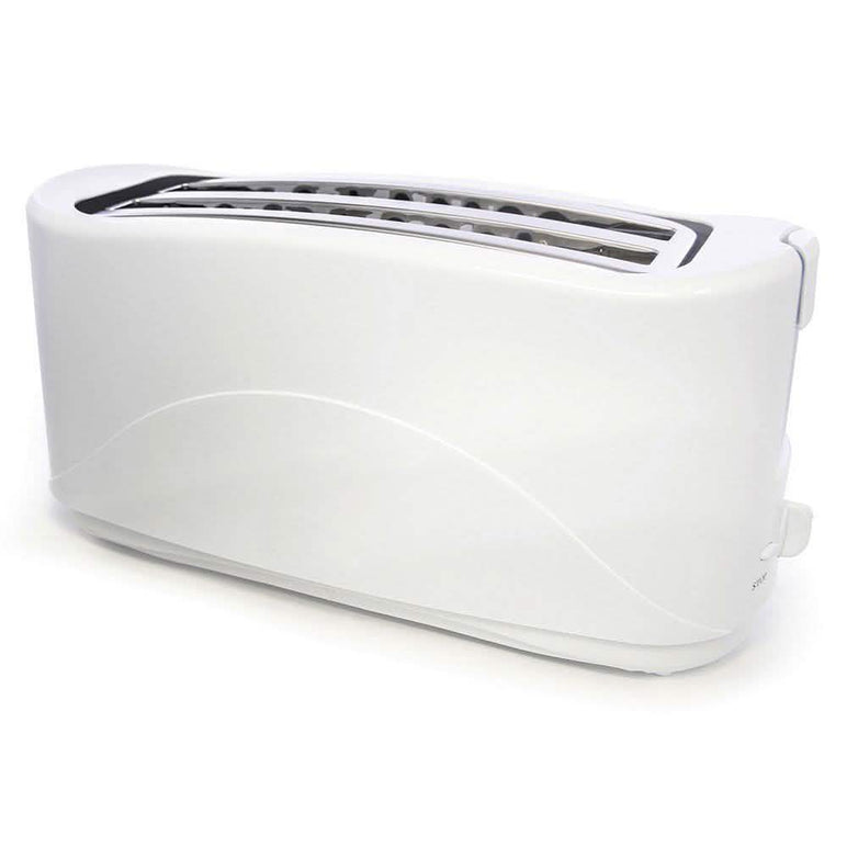 This White 1300W 4-Slice Toaster with 7 Browning Settings features cool touch construction for safety in the kitchen. It also has a 7 point electric browning control and a slide out crumb tray for easy cleaning.