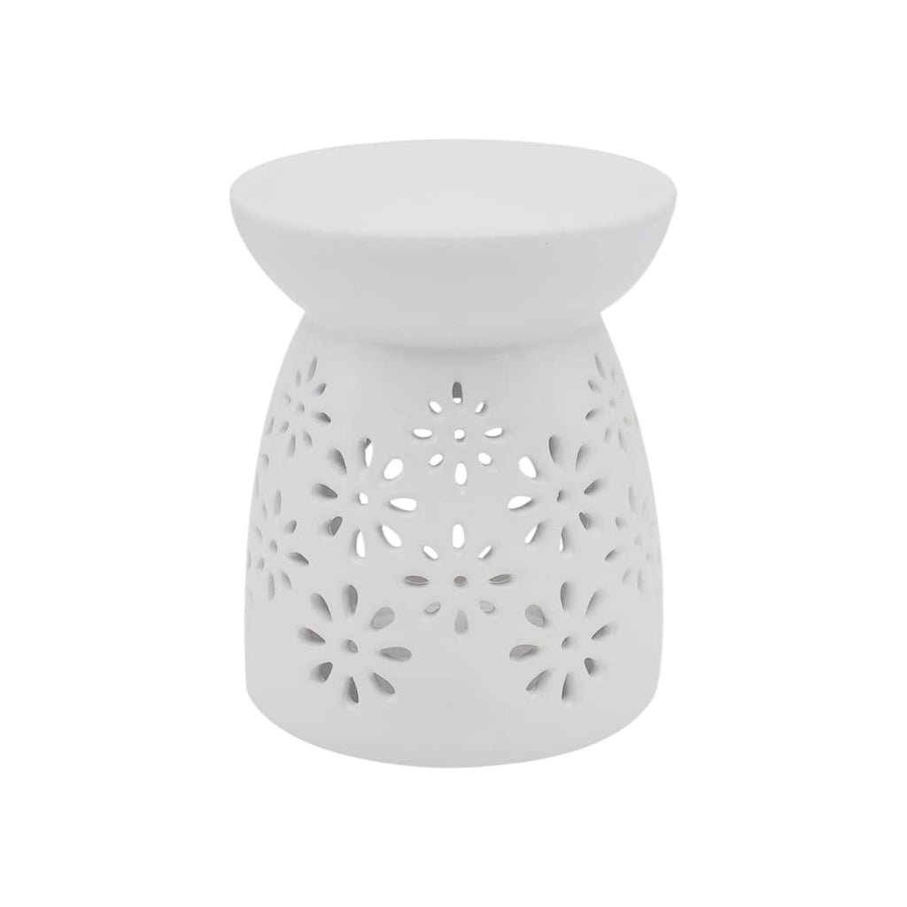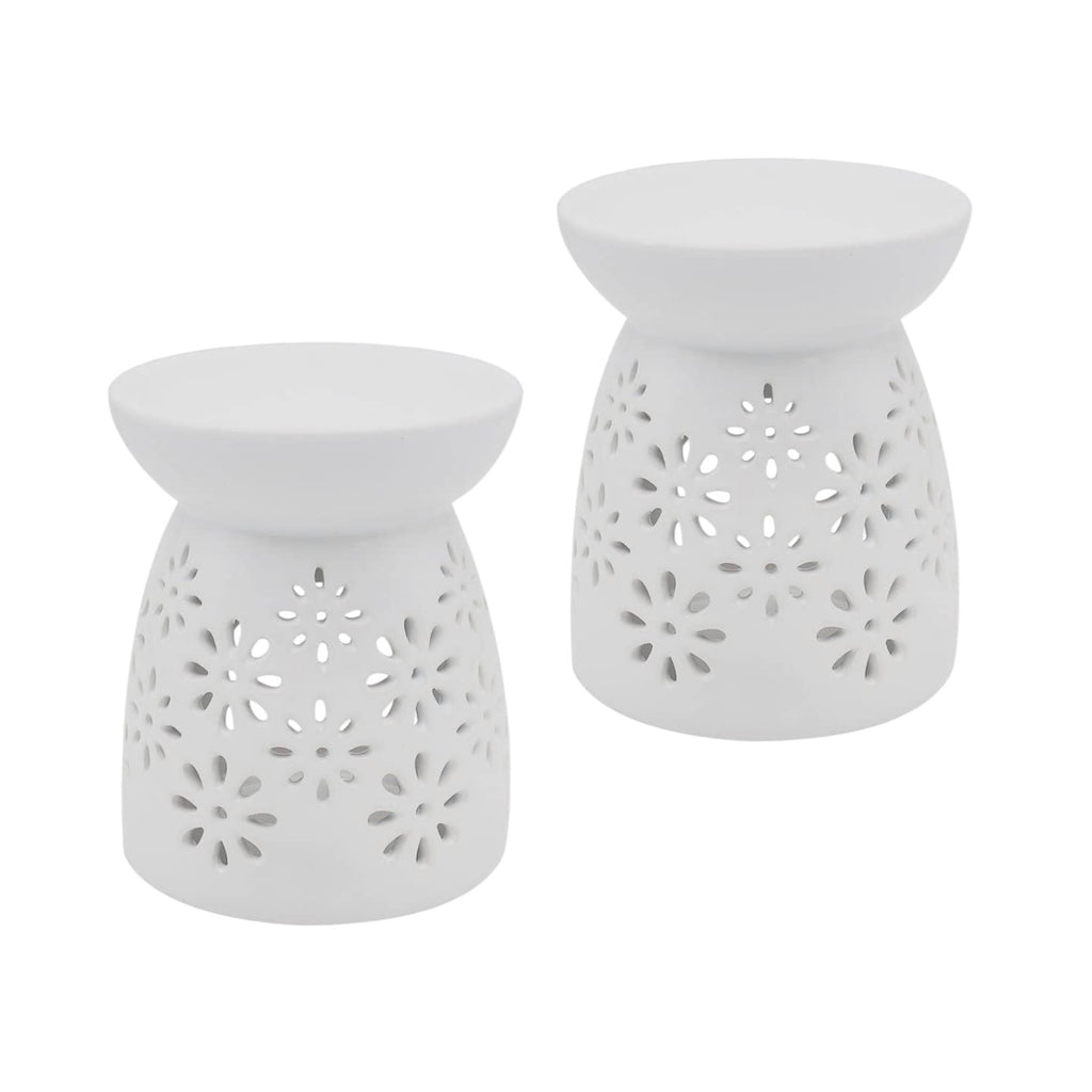 Set Of 2 White Flowers Tea Light Wax Melt Warmer Oil Burner