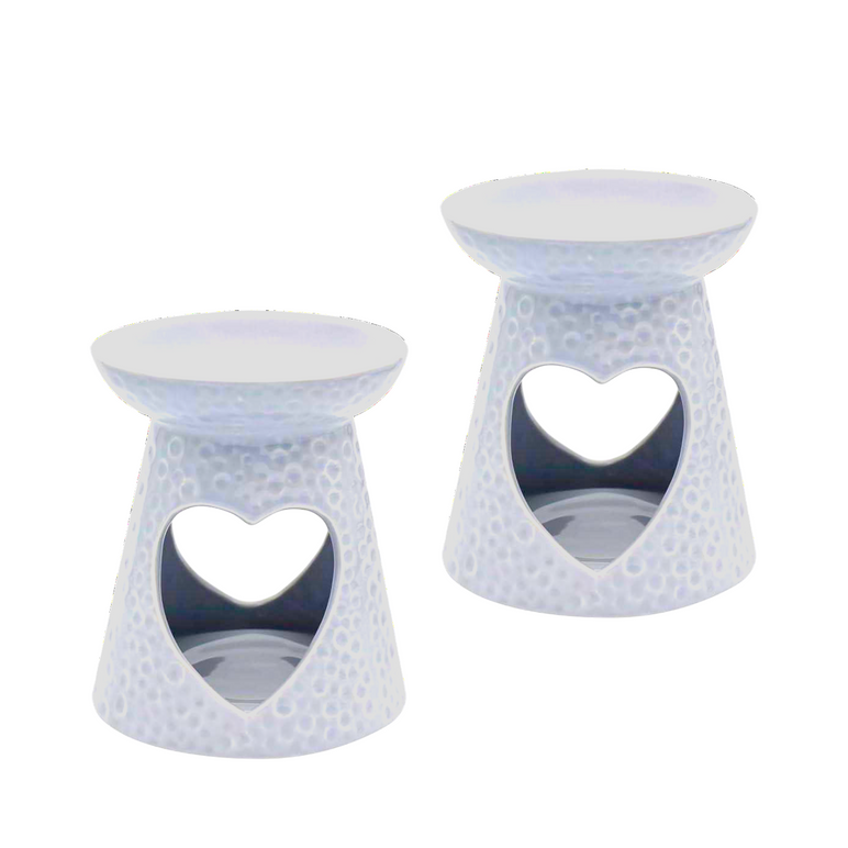 Set of 2 White Heart Tea Light Wax Melt Warmer Oil Burner