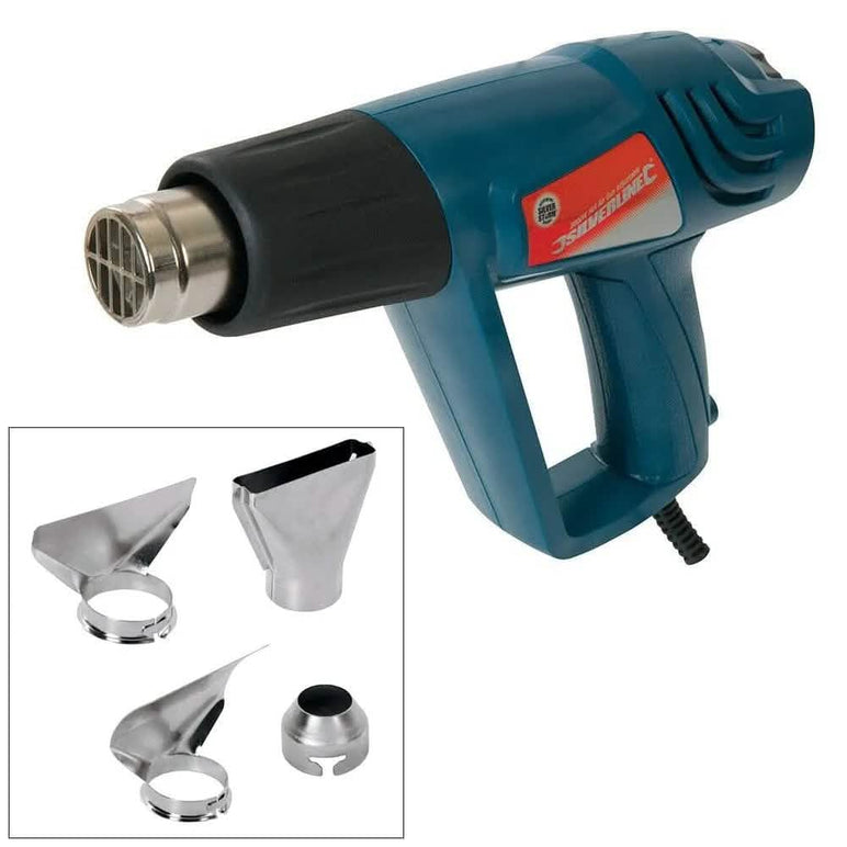 - 3-speed air flow switch, for drying or stripping paint, shaping plastic, heat-shrink packaging and defrosting frozen water pipes.