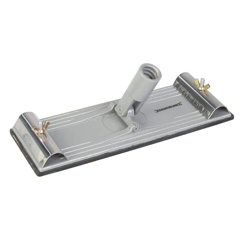 Swivel Pole Sander 235 x 80mm Die-cast aluminium sander with 2 securing clamps to attach sanding mesh or abrasive paper on to a foam rubber pad Swivel socket accepts extension poles Compatible with Extension Pole (633699 and 220164) Warranty: LIFETIME for all hand tools ; 3 YEAR for power tools , air & petrol tools. Silverline-Tooltime 675341 5024763036071
