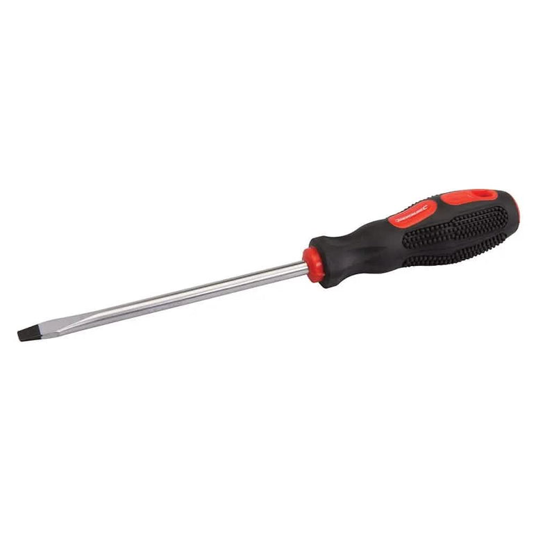 � General Purpose Screwdriver Slotted Flared � 6 x 100mm � Hardened and tempered chrome vanadium shanks with satin finish shafts and chemically-blackened magnetic tips � Polymer over-moulded soft-grip ergonomic handles for excellent control and torque transition � Colour-coded for easy tip recognition � Warranty: LIFETIME for all hand tools ; 3 YEAR for power tools , air & petrol tools. � Silverline-Tooltime 242013 5024763121487